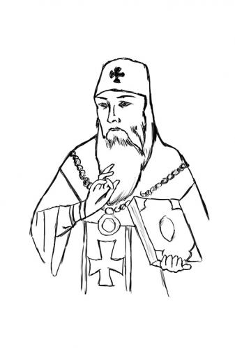 Reprezentările nu diferă mult de cele ale ierarhilor în costum liturgic de ceremonie, elementul cel mai evident al diferenţei fiind acoperământul de cap. În cazul de faţă ierarhul poartă potcap (camilafcă) şi nu mitră. Potcapul poate fi cilindric (după modelul grecesc), sau în trunchi de con răsturnat (după modelul rusesc). În rest personajele poartă stihar, epitrahil, sacos, omofor şi cruce pectorală şi, în cele mai mule cazuri, ţin în mână un tetraevangheliar într-o ferecătură bogat decorată pe care îl prezintă privitorului. Ele sunt reprezentate frontal, în picioare sau bust, şi au cel mai adesea o relaţie directă cu privitorul prin privirea îndreptată spre acesta „vorbindu-i”.