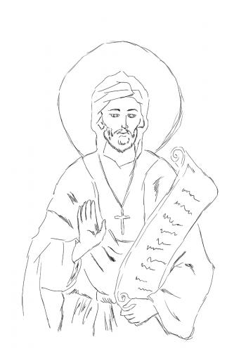 În mod similar altor teme iconografice de sfinţi doctori ai bisericii şi Sf. Efrem Sirul ţine în mână un sul desfăşurat cu un text din scrierile sale.
