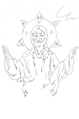 Odată cu apariția primelor basilici creștine în secolele III-V, se naște o iconografie creștină ce trece cu repeziciune de la preluări și prelucrări de motive iconografice din surse greco-romane și orientale la cristalizarea unui program propriu. Reprezentarea Divinității a fost soluționată pe două căi: fie prin chipul lui Iisus, ca parte a Treimii, (prezente fiind în majoritatea cazurilor literele omega, omicron, niu – ”o on” - ”Cel ce este”, unul din numele lui Dumnezeu), fie prin înfățișarea mâinii Domnului (vezi canonul Mâna Domnului), care iese din cerurile deschise și cel mai adesea binecuvântează, dar poate și răsplăti (cu coroană de martir, de exemplu), amenința sau chiar alunga de la sine.
