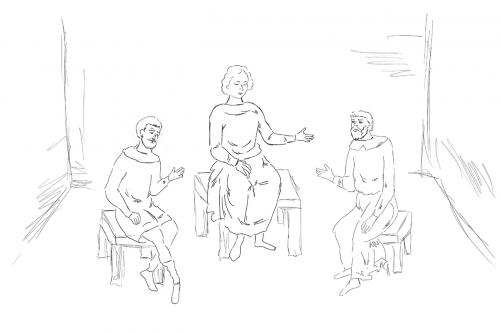 Scena „Iosif interpretând visele paharnicului şi ale brutarului”nu apare prea frecvent în arta plastică bizantină şi post-bizantină, neavand astfel un canon bine determinat.