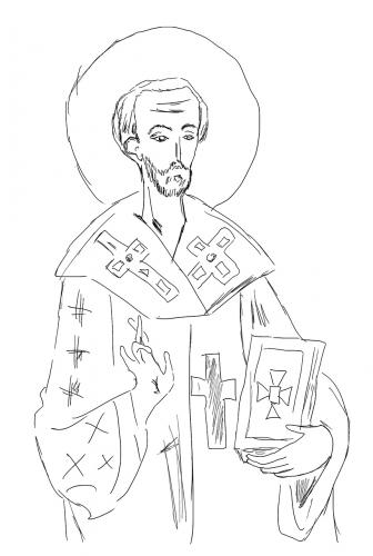 Reprezentat frecvent în ilustraţia de carte şi în icoane de hram, rareori în frescă, Sf. Ioan Gură de Aur poate fi înfăţişat singur sau însoţit de ceilalţi Părinţi ai Bisericii. El este reprezentat frontal, în picioare sau bust, ca un bărbat matur, cu părul scurt, uneori cu tonsură sau cu un început de calviţie, barbă tunsă aproape de obraji şi chip îngust. Este îmbrăcat în veşminte liturghice episcopale şi ţine Evanghelia la piept cu braţul stâng în timp ce binecuvanteaza cu dreapta.